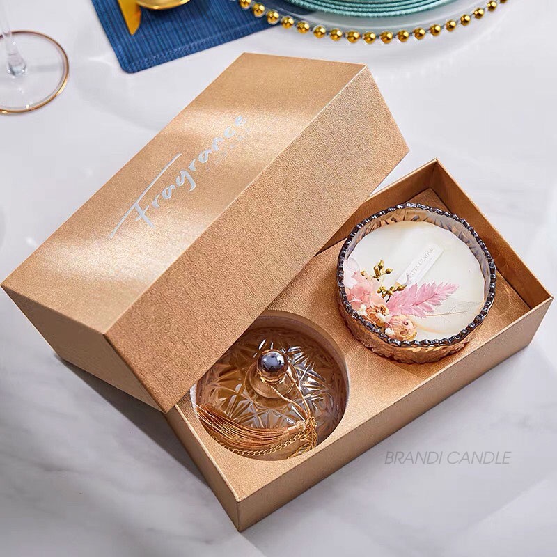 Giới thiệu [Kèm hộp và túi quà] Set nến thơm hoa khô hũ thủy tinh nắp đậy sang trọng