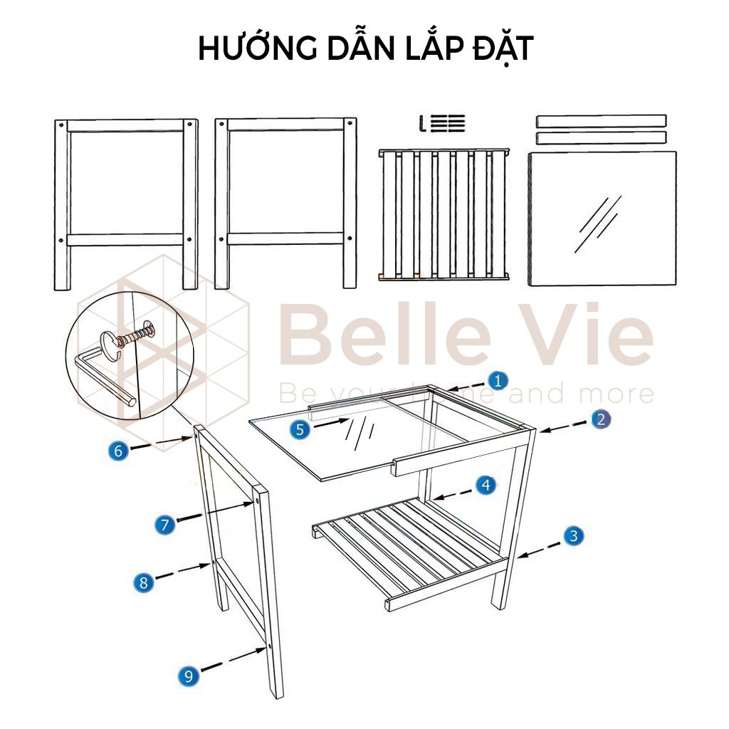 Kệ Đầu Giường Khung Gỗ Mặt Kính 2 Tầng BelleVie Kệ Gỗ Tab Đầu Giường Mặt Kính Glass ShelfTHÔNG SỐ: