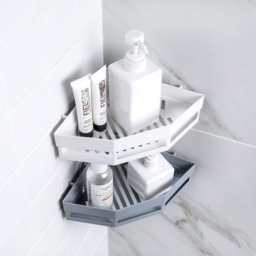 Kệ tam giác dán góc tường thiết kế hình tam giác giúp tận dụng tiết kiệm không gian phòng tắm.