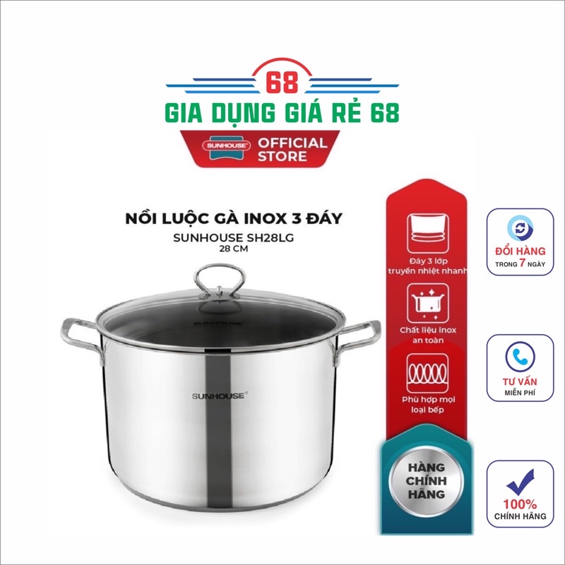 Nhà cửa & Đời sống > Dụng cụ nhà bếp > Nồi || Nồi luộc gà inox 3 đáy SUNHOUSE SH28LG - siêu tiện lợiCòn hàng