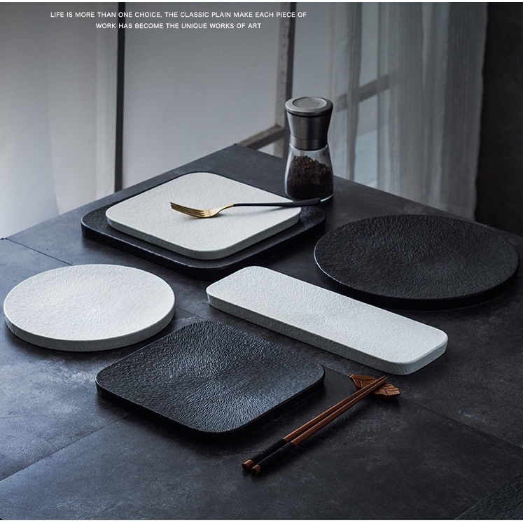 ĐĨA SỨ TRÒN 2 MÀU ĐEN/TRẮNG - ĐĨA NHÀ HÀNG𝐂𝐇𝐀̂́𝐓 𝐋𝐈𝐄̣̂𝐔