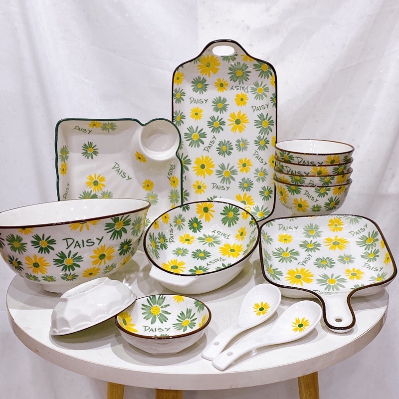 Nhà cửa & Đời sống > Bộ đồ bàn ăn > Dĩa || Bộ bát đĩa gốm sứ bộ hoa cúc 13 mónCòn hàng