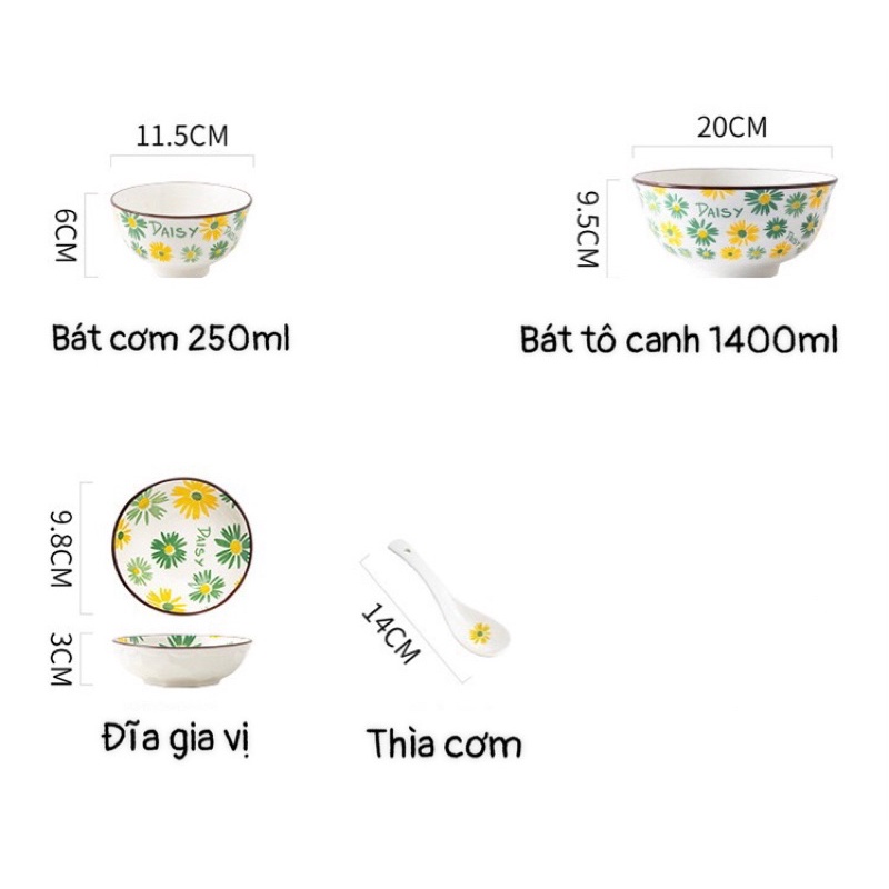 Bộ bát đĩa gốm sứ bộ hoa cúc 13 món