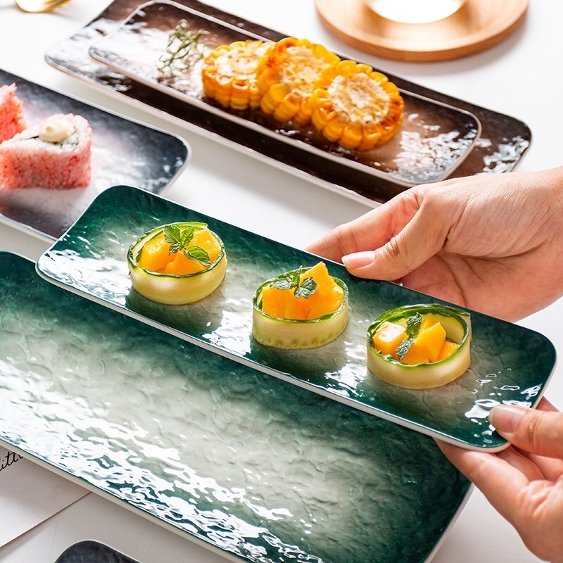 Giới thiệu Đĩa sứ chữ nhật Vân Đá, Đĩa dài sushi gimbap 3 size