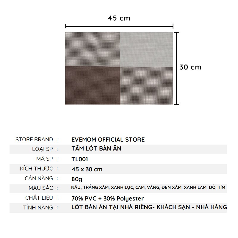 Nhà cửa & Đời sống > Bộ đồ bàn ăn > Khay, tấm lót bàn ăn || Tấm Lót Bàn Ăn Đẹp Bằng Nhựa PVC Chống Thấm Cao Cấp Cho Nhà Hàng EVEMOM STORE TL001Còn hàng