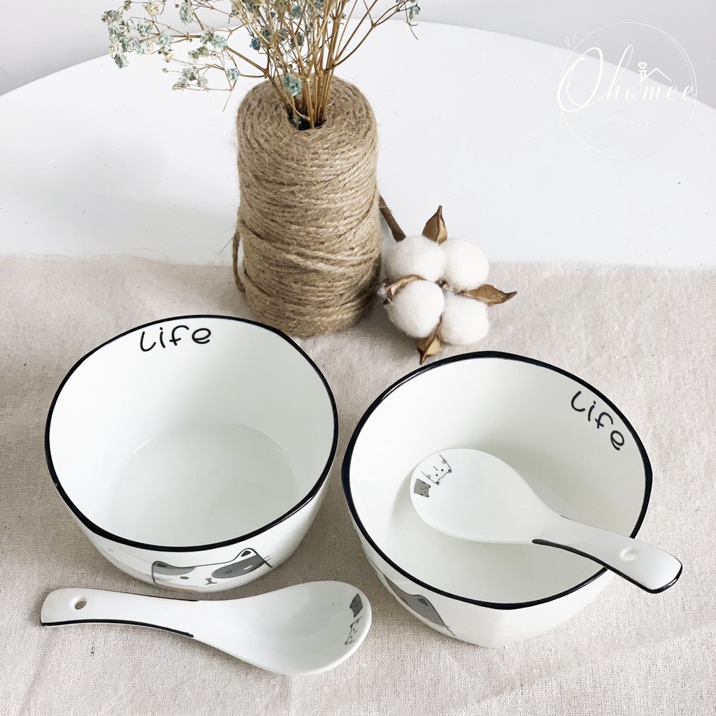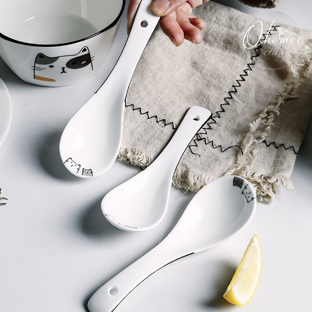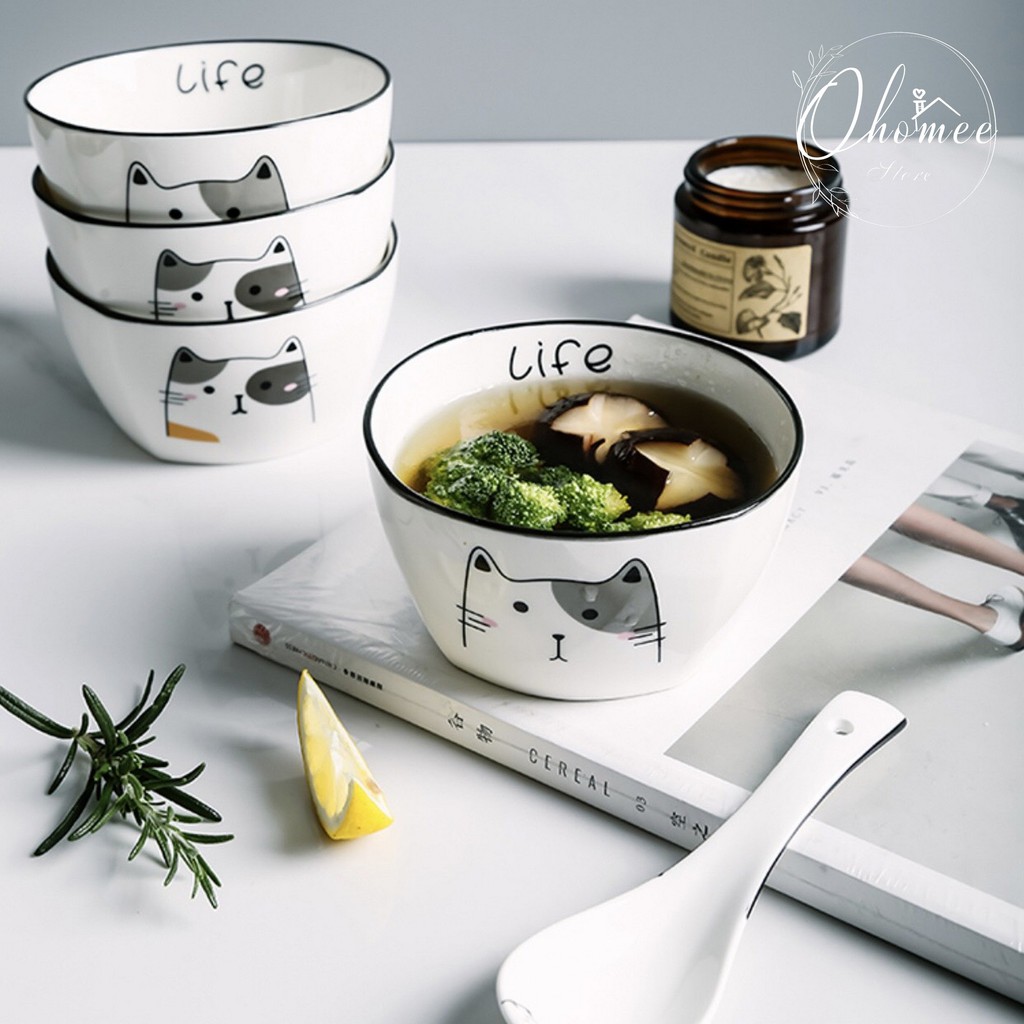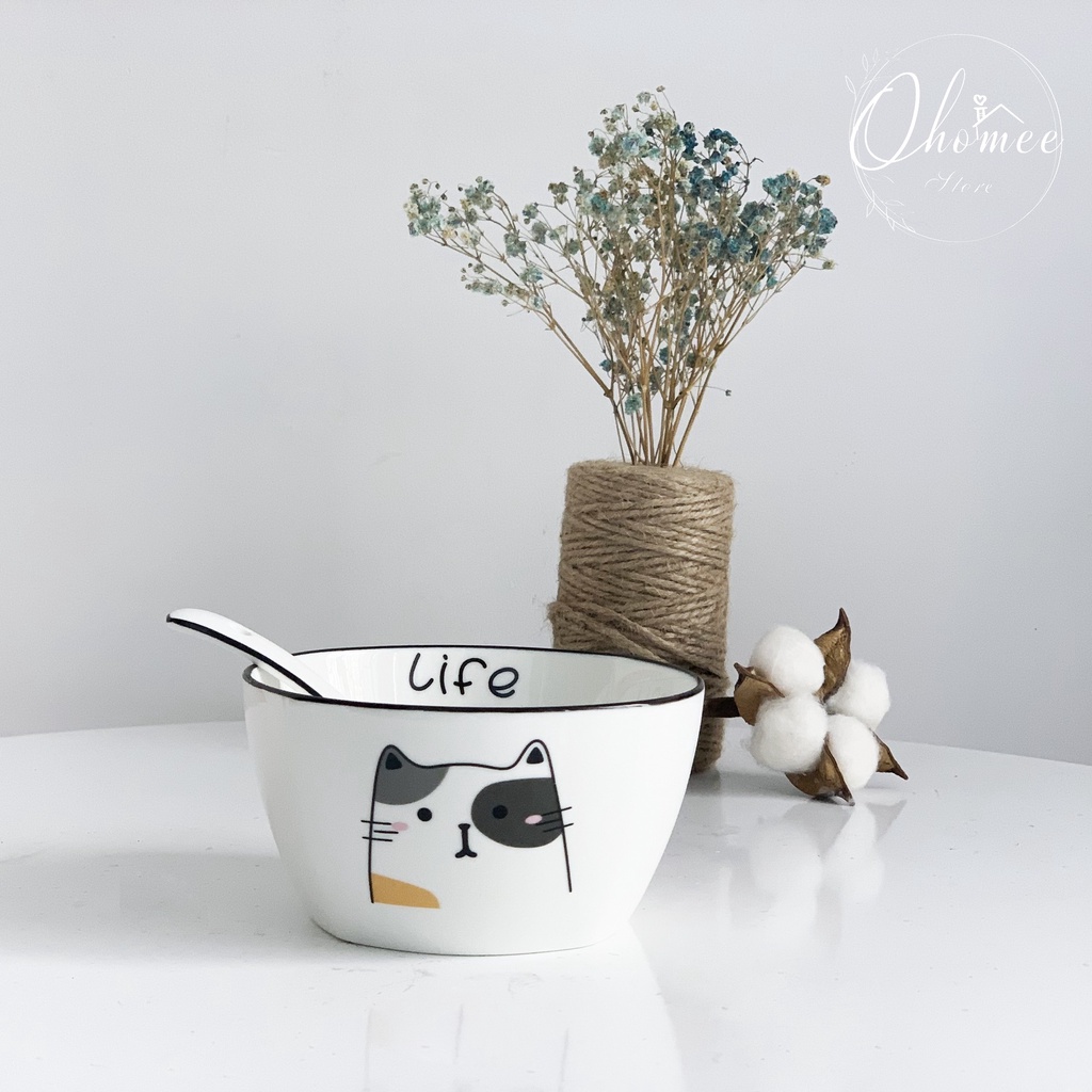 Nhà cửa & Đời sống > Bộ đồ bàn ăn > Tô || [LẺ] Bát muỗng gốm sứ cao cấp in hình mèo đẹp, dễ thươngCòn hàng