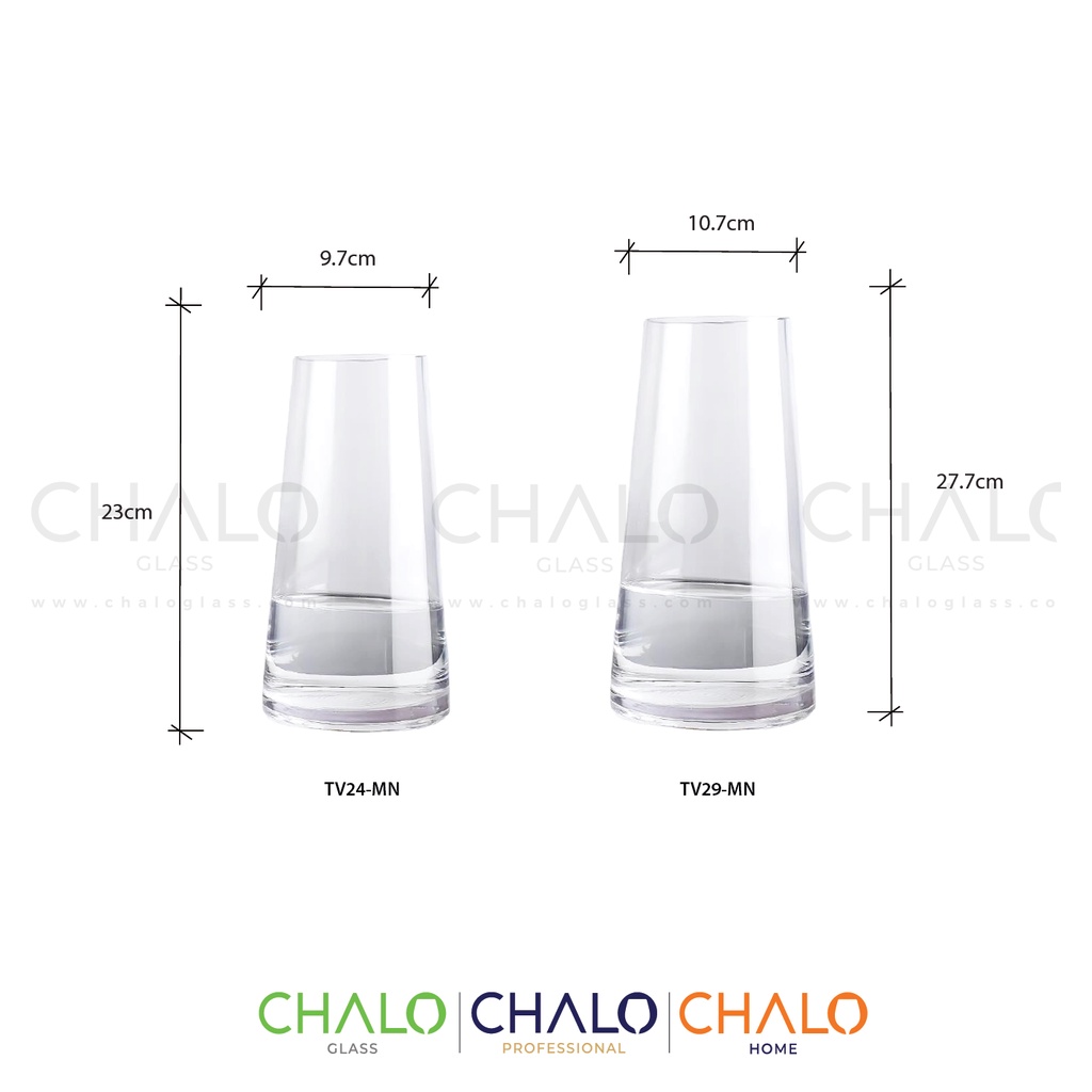 Lọ hoa thuỷ tinh trụ miệng vát các cỡ sở hữu chất liệu thủy tinh trong suốt và dày dặn.Sản phẩm được sản xuất tại Việt Nam, là sản phẩm trang trí được ưa chuộng bởi kiểu dáng hiện đại, chuẩn phong cách decor tối giản nhưng không kém phần sang trọng.