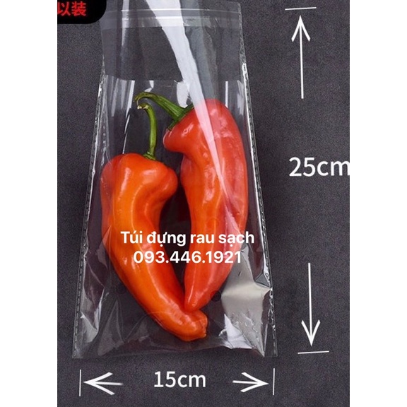 túi đựng rau sạch có dán miệng, túi có đột 1 lỗ sẵnsize túi