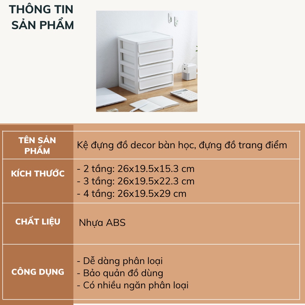 - Điểm cộng lớn nhất của KỆ ĐỰNG ĐỒ TRANG ĐIỂM, MỸ PHẨM chính là giúp các nàng dễ dàng phân loại và bảo quản dụng cụ trang điểm, mỹ phẩm dễ dàng hơn. KỆ ĐỂ BÀN thiết kế thông minh và ĐA NĂNG bao gồm nhiều ngăn kéo, khay để bạn đựng đồ dùng, trang sức và đồ trang điểm, kem dưỡng, nước hoa, son môi,…