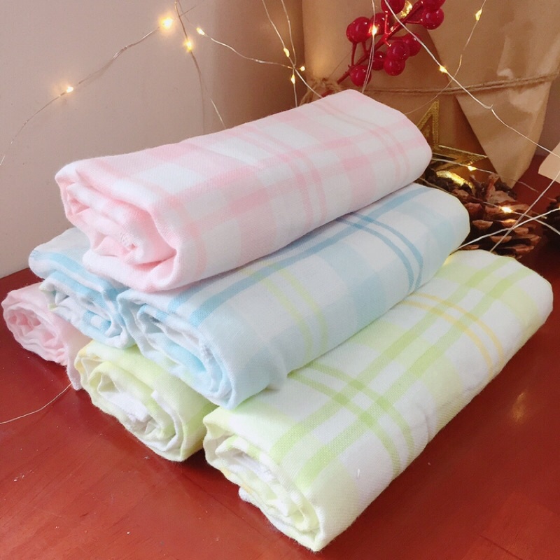 ✨Khăn tắm size trung dạng xô xuất Nhật hoạ tiết kẻ ô shop mới về ạ✨Khăn mềm, mỏng, 1 mặt vải và 1 mặt bông, thích hợp dùng làm khăn mặt, khăn tắm cho bé.
