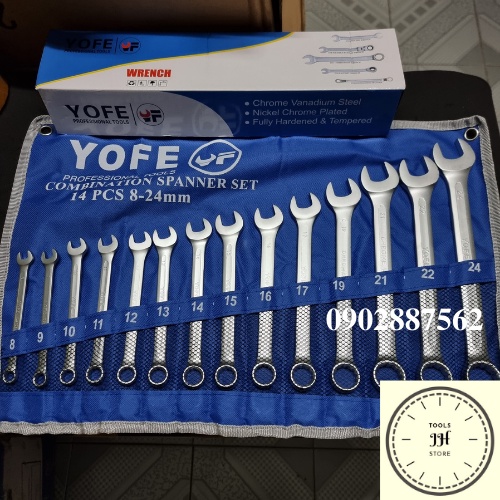 Nhà cửa & Đời sống > Dụng cụ & Thiết bị tiện ích > Dụng cụ > Bộ cờ lê || bộ cờ lê vòng miệng YOFE 14 cây hàng công ty (8mm - 24mm)Còn hàng