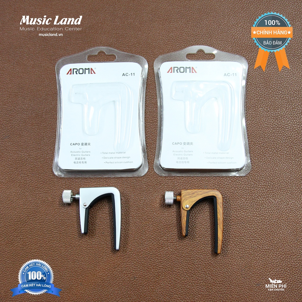 - Capo Đàn Guitar Acoustic Aroma AC-11 có 2 màu Bạc và Gỗ cho được nhiều sự lựa chọn tùy theo cá tính của mỗi người phù hợp với mọi phong cách.