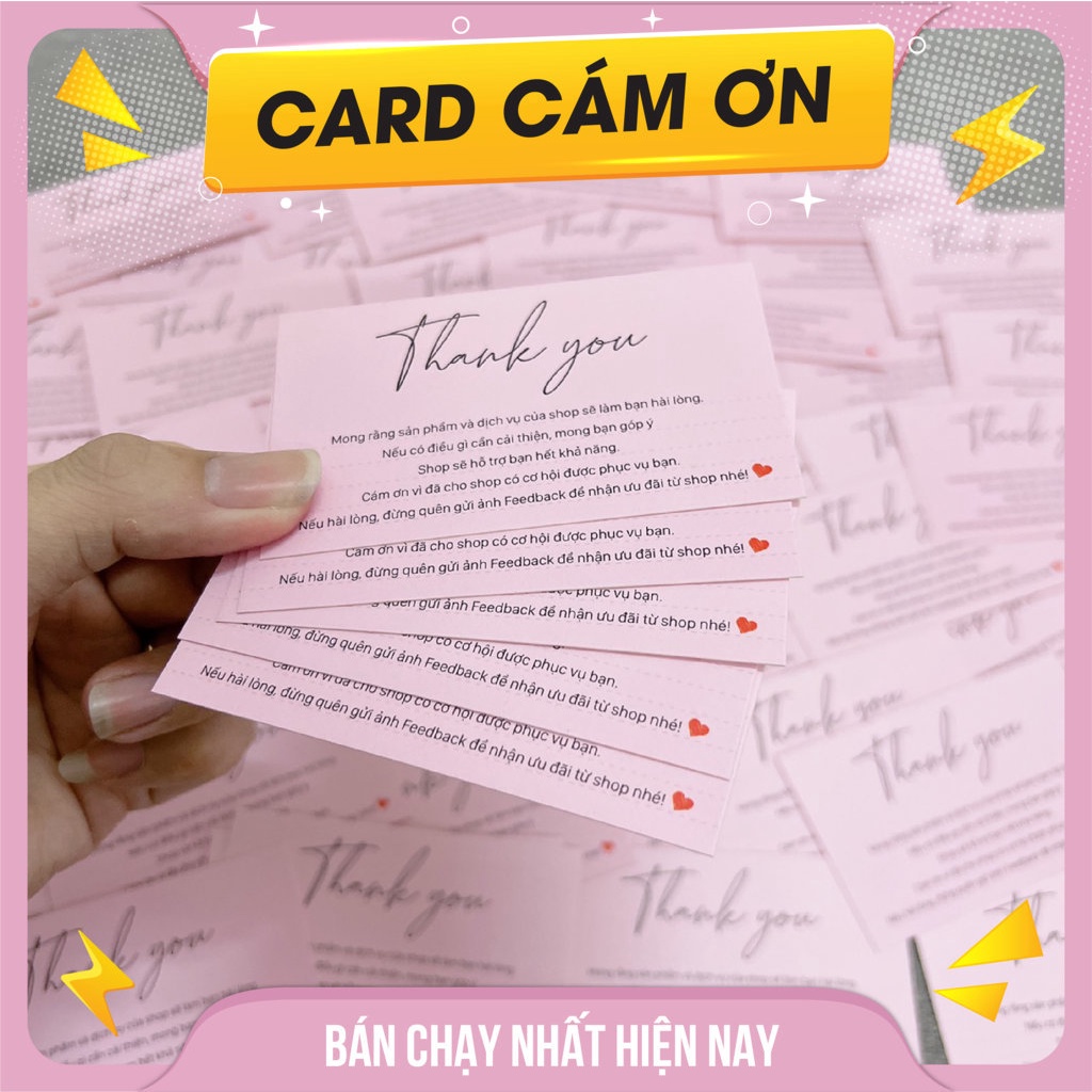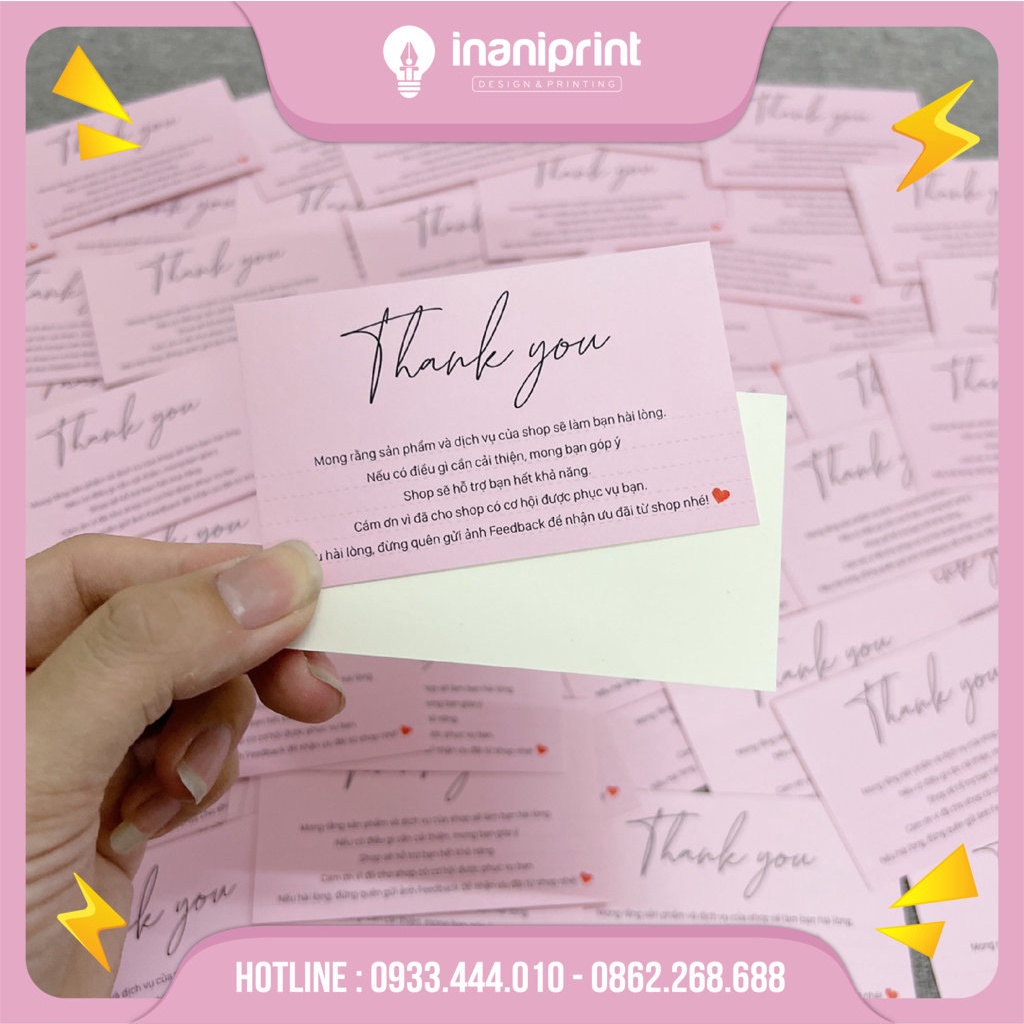 50 Tấm Card cám ơn, giấy cám ơn màu hồng - Giấy i300 - 1 mặt