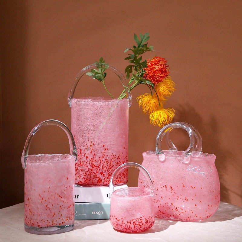 Nhà cửa & Đời sống > Trang trí nhà cửa > Bình trang trí || Lọ Hoa Thủy Tinh Bình thủy tinh hình giỏ xinh xắn màu hồngCòn hàng