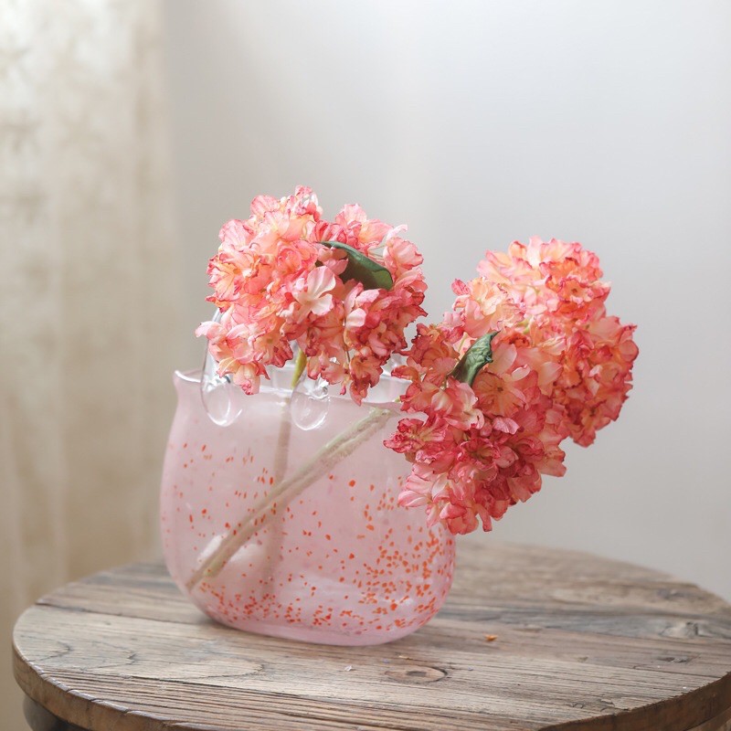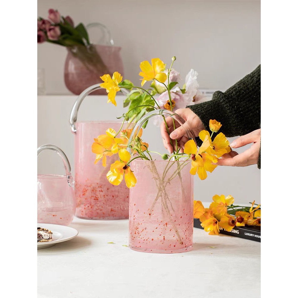 Lọ Hoa Thủy Tinh Bình thủy tinh hình giỏ xinh xắn màu hồng