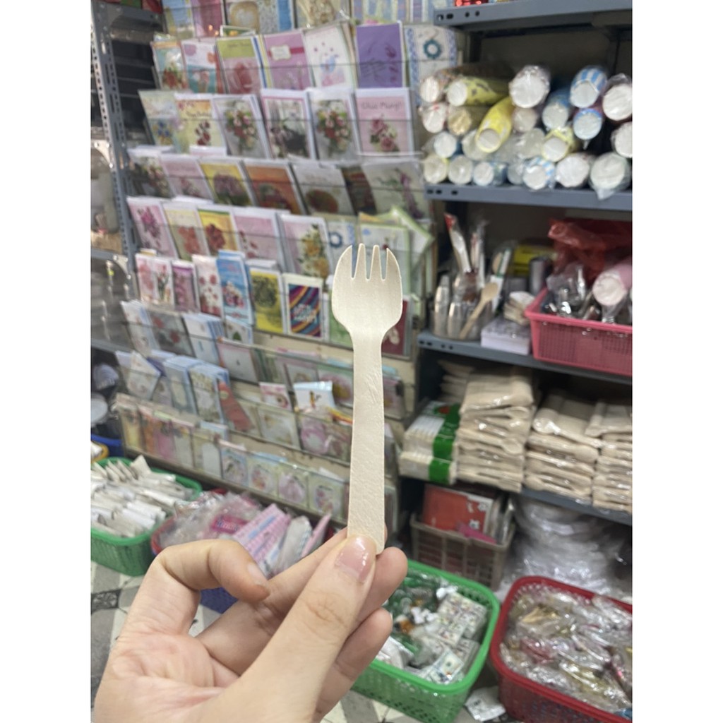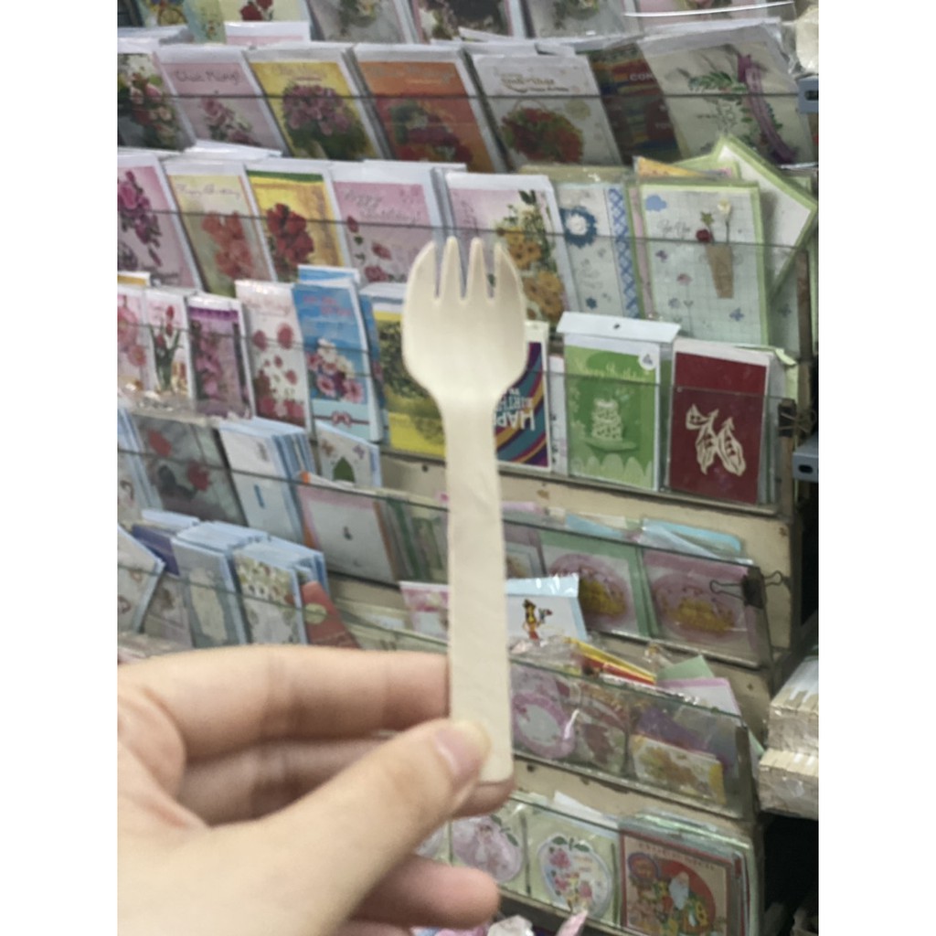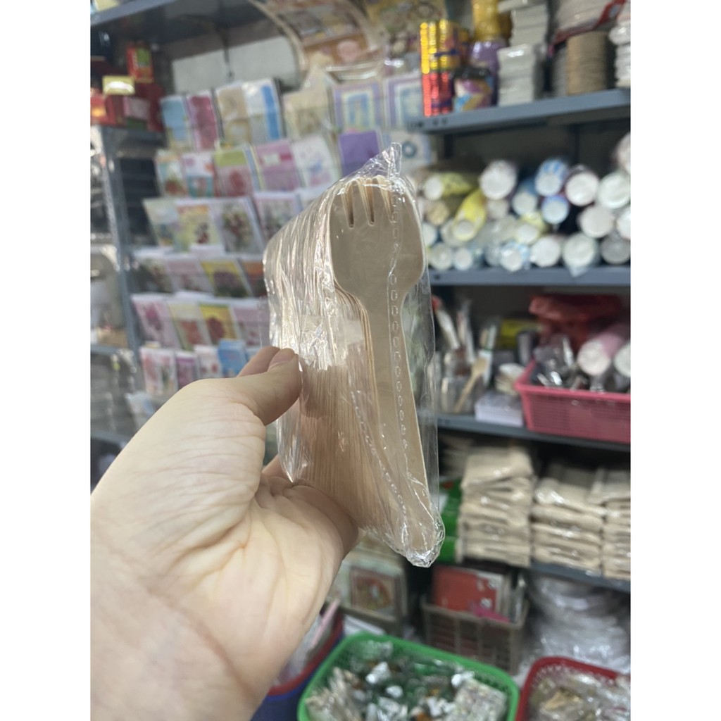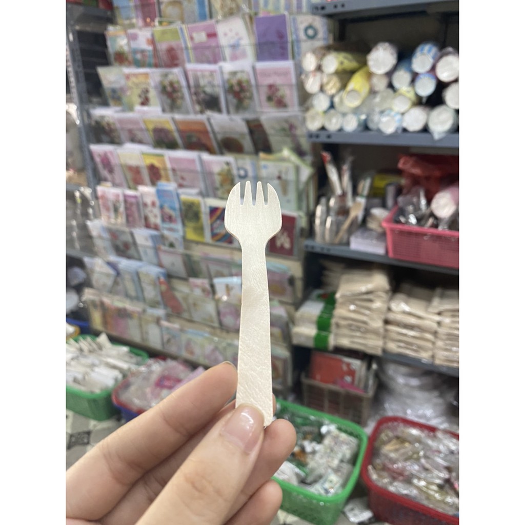 100 cái dĩa nĩa gỗ bé 10.5cm dùng 1 lần bảo vệ môi trường