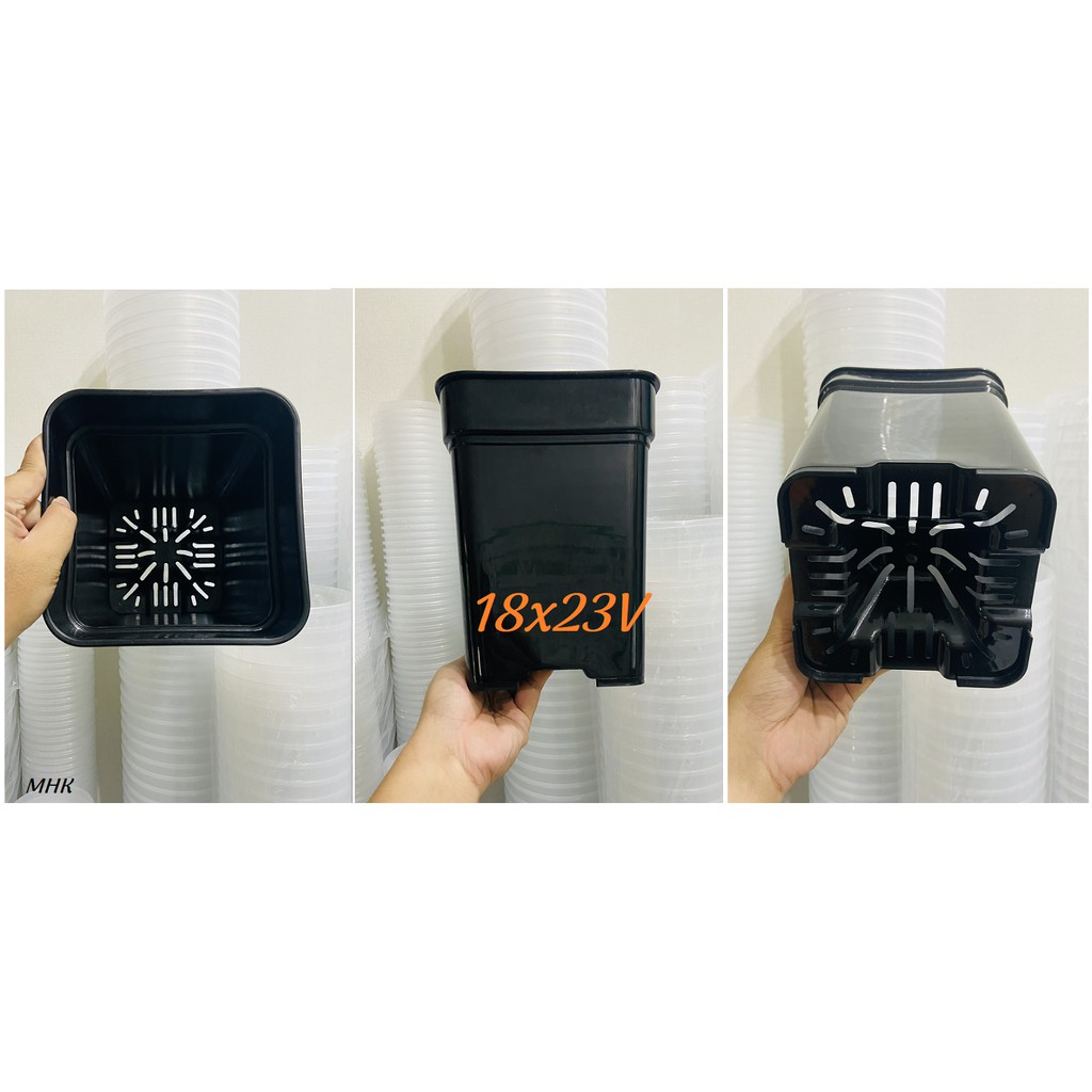Chậu nhựa cứng 18x23 vuông cao , đáy thoát nước ( kiểng lá , hoa hồng , cây cảnh)
