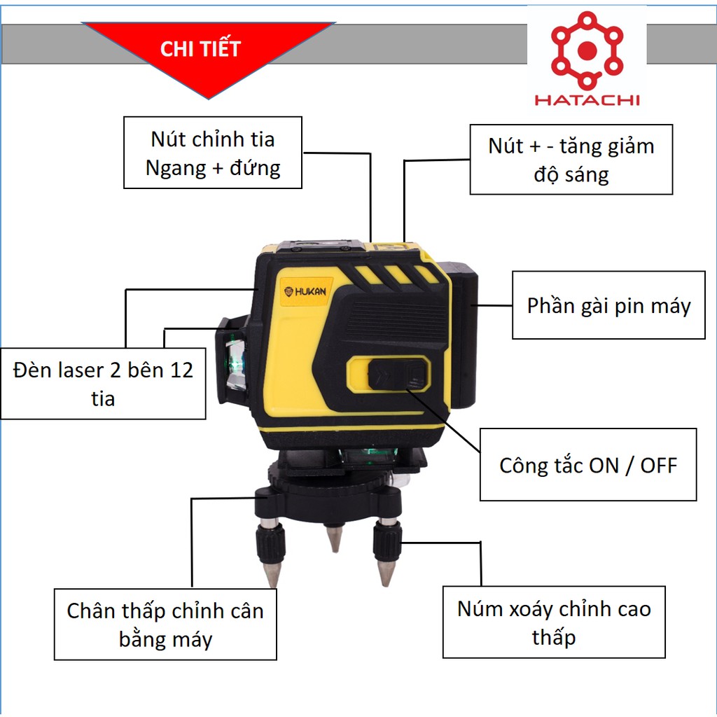 Nhà cửa & Đời sống > Dụng cụ & Thiết bị tiện ích > Dụng cụ > Dụng cụ đo lường || Máy cân bằng laser | Máy cân bằng laser 12 tia Hukan |Hàng chính hãng - Công nghệ MỹCòn hàng
