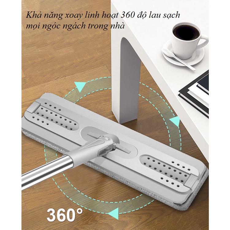 ✔️ Bàn lau thiết kế dạng dẹt 33cm, xoay 360 độ có thể lau sạch mọi ngóc ngách trong nhà