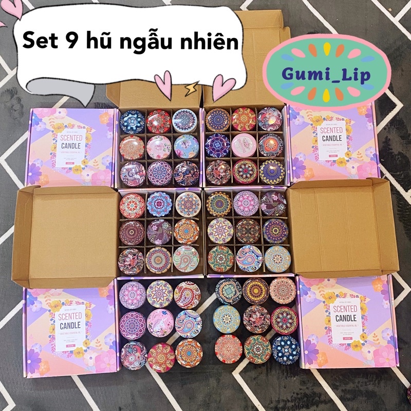 Nến thơm phòng thiên nhiên không khói cao cấp Set Quà Tặng Hộp 9 mùi hương