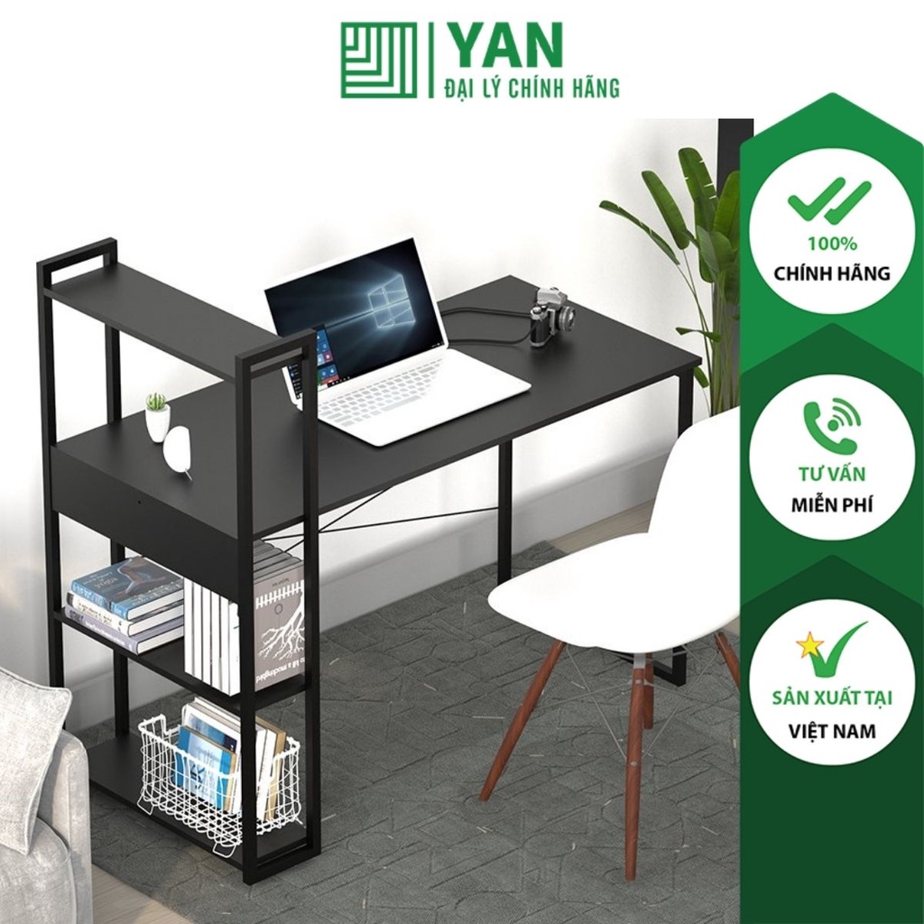 Bàn học bàn làm việc bàn máy tính khung sắt kèm kệ sách 4 tầng