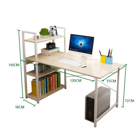 Giới thiệu Bàn học bàn làm việc bàn máy tính khung sắt kèm kệ sách 4 tầng