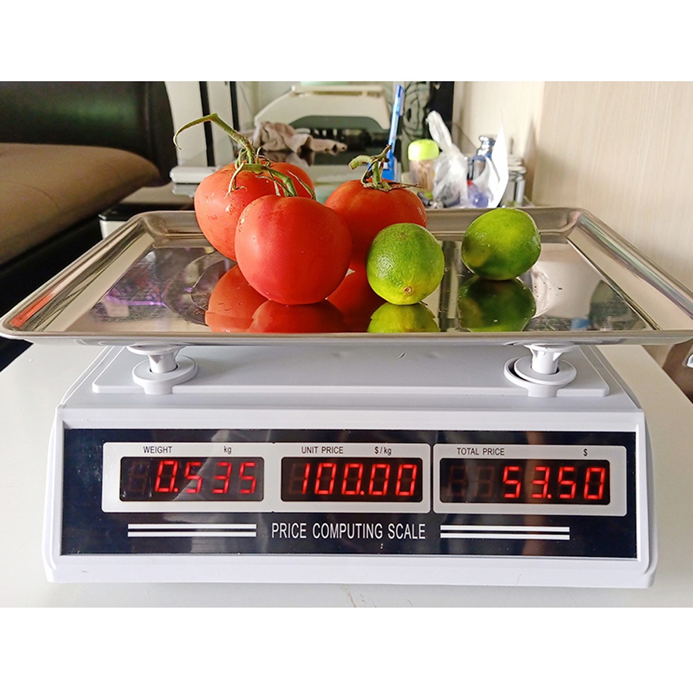 - Mặt đĩa cân được thiết kế kiểu khay đựng hàng nên rất thuận tiện trong việc buôn bán hoa quả, cá thịt.