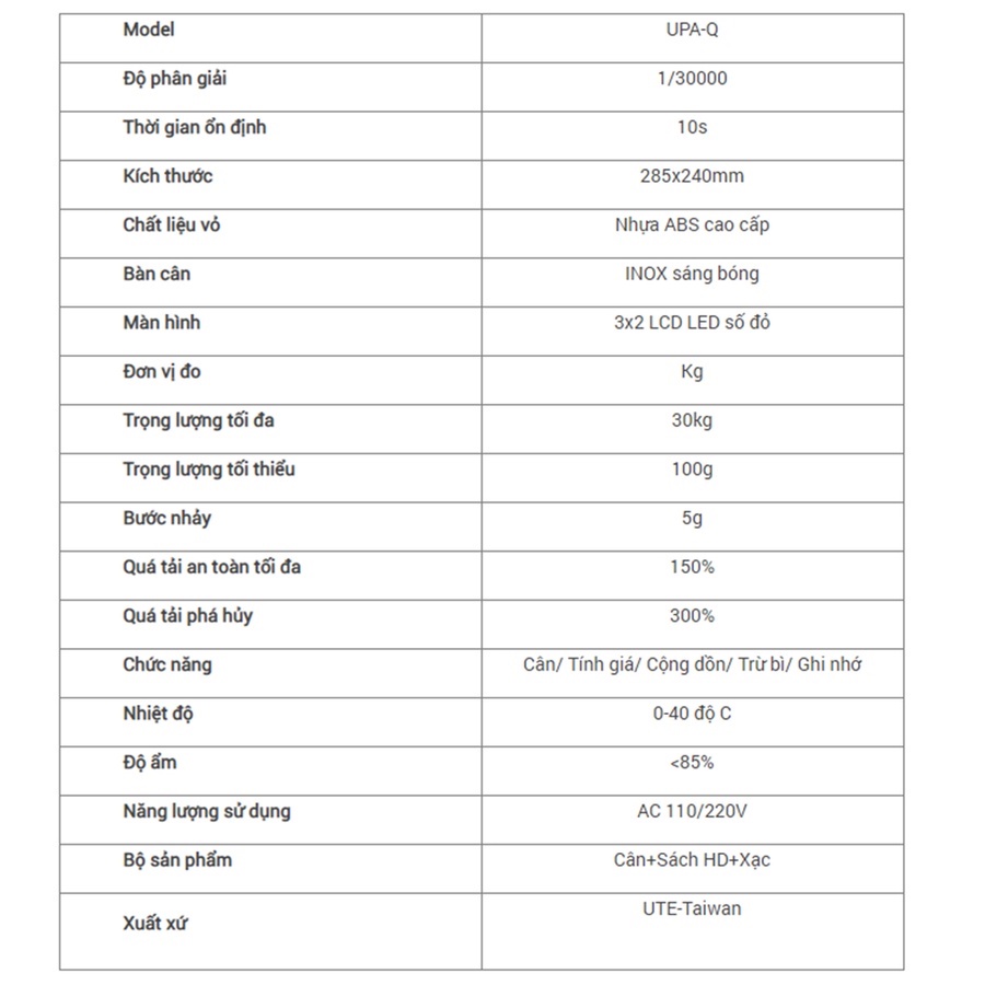 Nhà cửa & Đời sống > Dụng cụ nhà bếp > Cân nhà bếp || Cân tính tiền điện tử UTE UPA-Q 30kg chuẩn dành cho bán hàng siêu thịCòn hàng