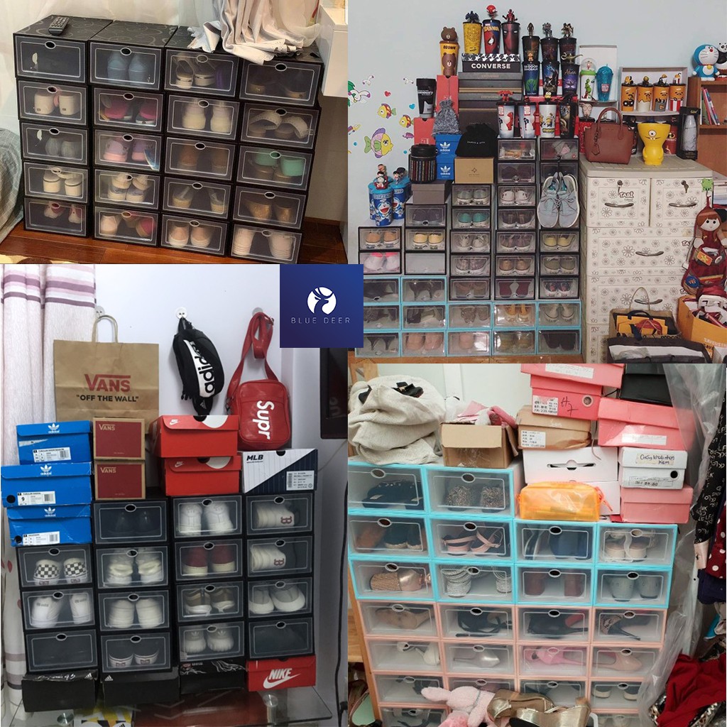 Giới thiệu [Combo] Hộp nhựa đựng giày nắp cứng trong suốt Viền Trắng - BLUE DEER