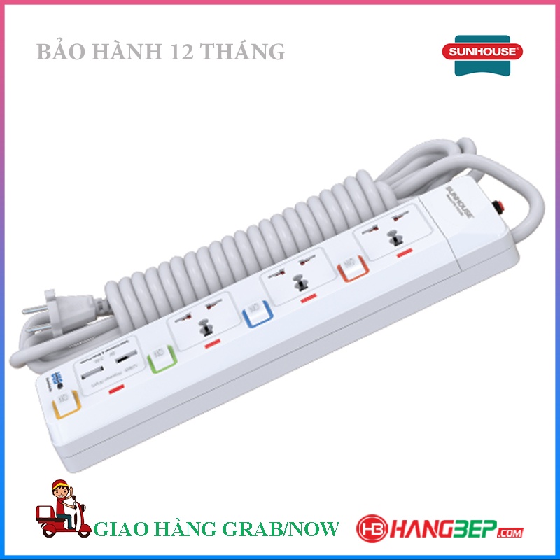 Thiết Bị Điện Gia Dụng > Mạch điện & Phụ tùng > Ổ cắm điện & Dây nối || Ổ cắm điện Sunhouse SHE-OC2-3RU - 2 chấu, 3 chấu cắm, 2 sạc USB chính hãng phân phốiCòn hàng