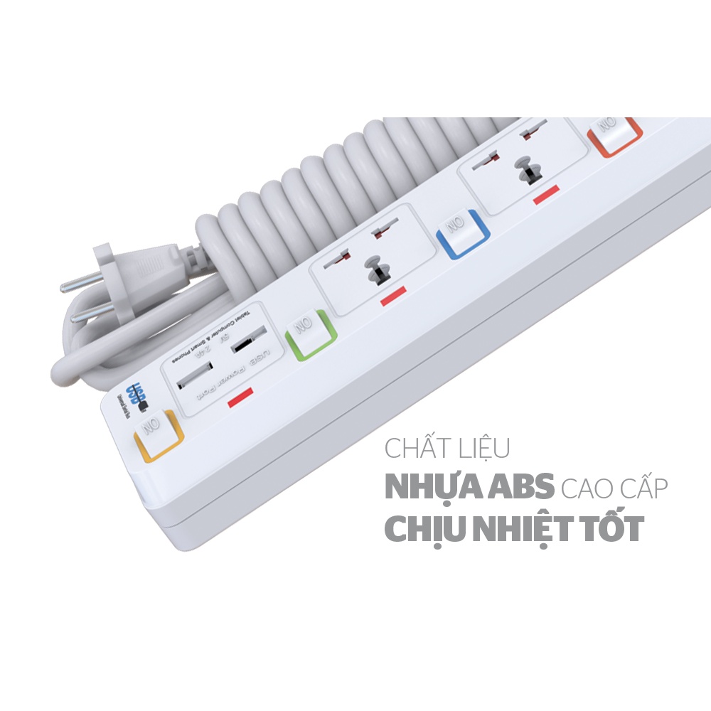 ✔ 3 chấu cắm, 2 sạc USB thiết bị di động, chiều dài dây 2.5m