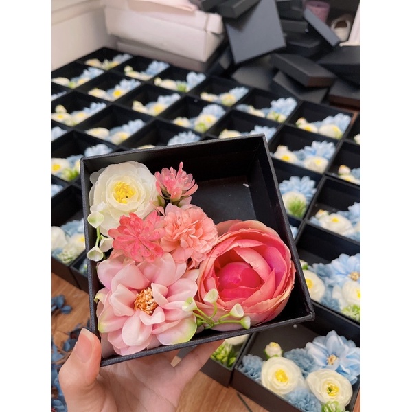 Nhà cửa & Đời sống > Trang trí nhà cửa > Hoa trang trí || Hộp đựng quà tặng, mỹ phẩm cao cấp hoa lụa kt 13.13cmCòn hàng