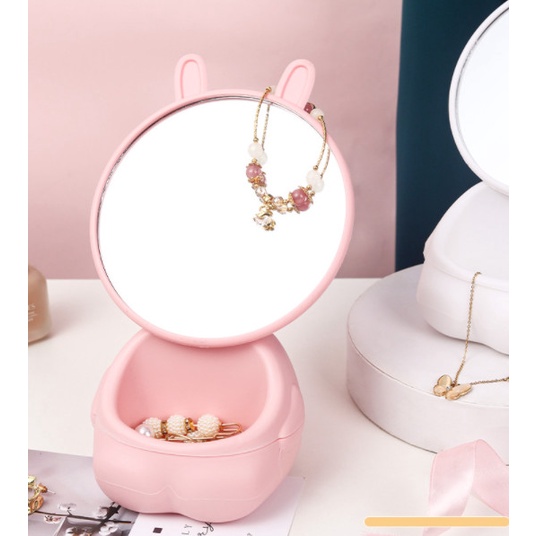 Gương trang điểm để bàn tai thỏ lắp ráp và xoay ngược phong cách Hàn Quốc - Sindecor