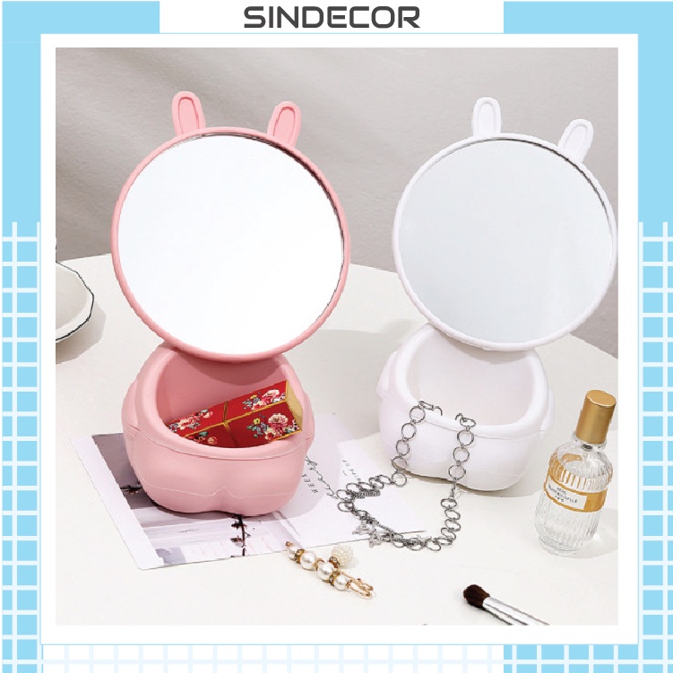 Nhà cửa & Đời sống > Trang trí nhà cửa > Gương || Gương trang điểm để bàn tai thỏ lắp ráp và xoay ngược phong cách Hàn Quốc - SindecorCòn hàng