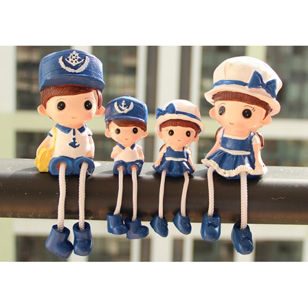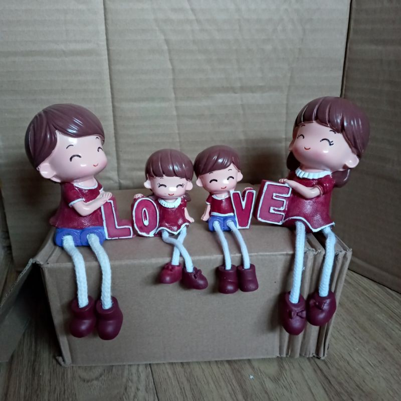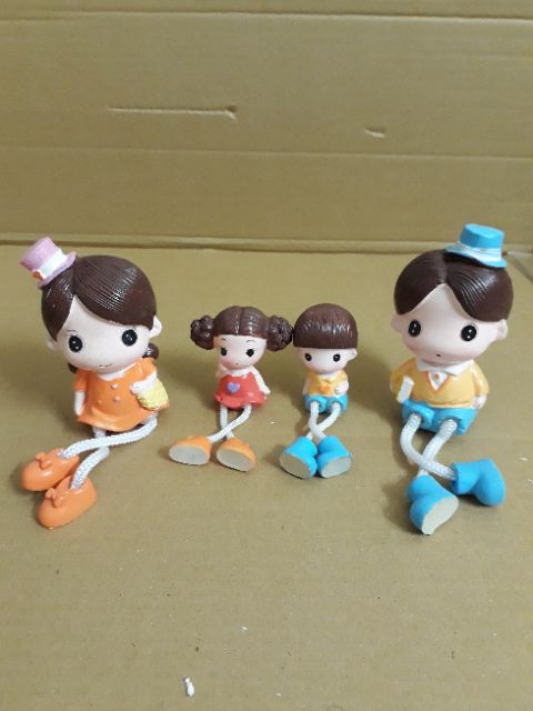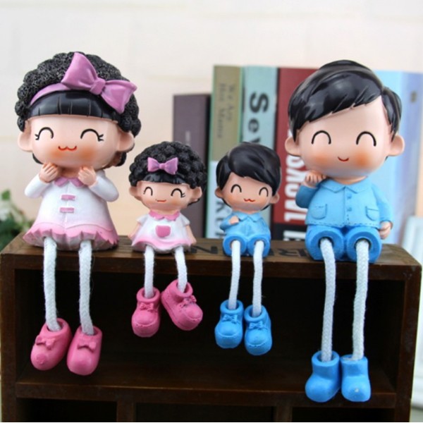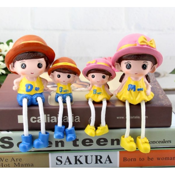 Bộ tượng gia đình 4 thành viên ngộ nghĩnh ngồi thả chân thích hợp bày trang trí kệ treo tường, giá sách, vách ngăn bàn làm việc.Kích thước: phần thân tượng bố mẹ cao 10cm, thân tượng các con cao 6cm.