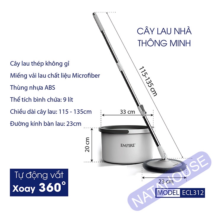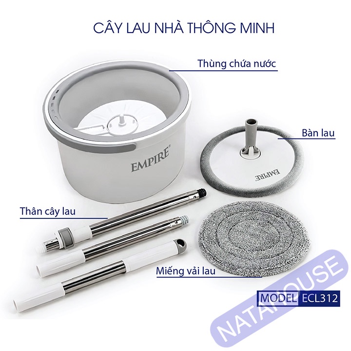 Nhà cửa & Đời sống > Dụng cụ chăm sóc nhà cửa > Cây lau nhà || Cây Lau Nhà Empire ECL312 Bộ Lau Nhà Tự Vắt Thông Minh tiết kiệm nước NATAHOUSECòn hàng