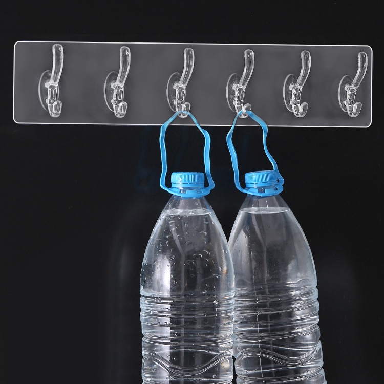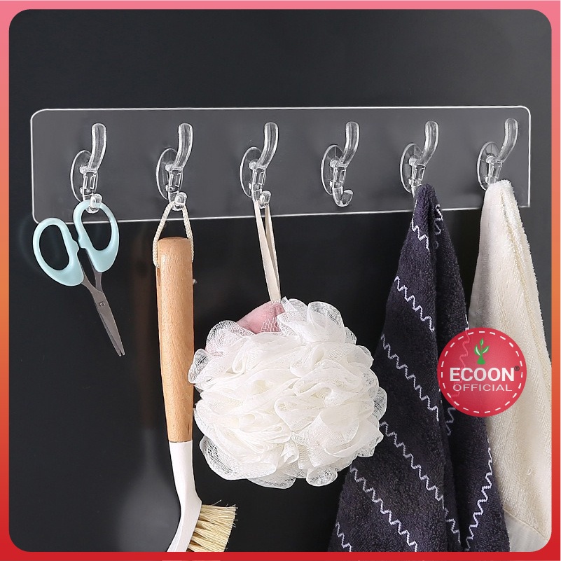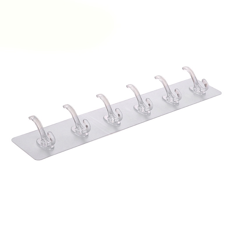 Móc treo đồ dán tường tiện ích, thanh móc 6 trong suốt siêu dính