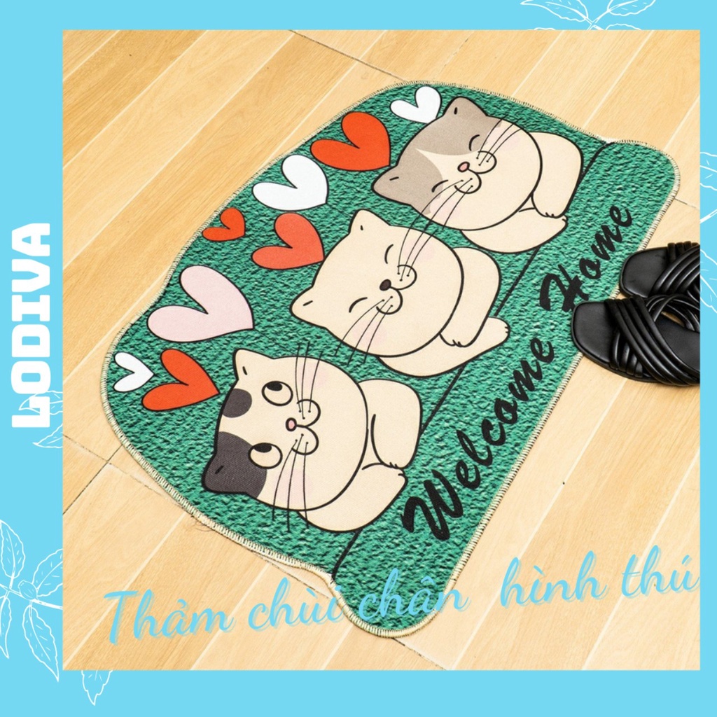 Thảm Chùi Chân hình thú chống trượt thấm nước hình thú cao cấp 3d LODIVA TCCT01
