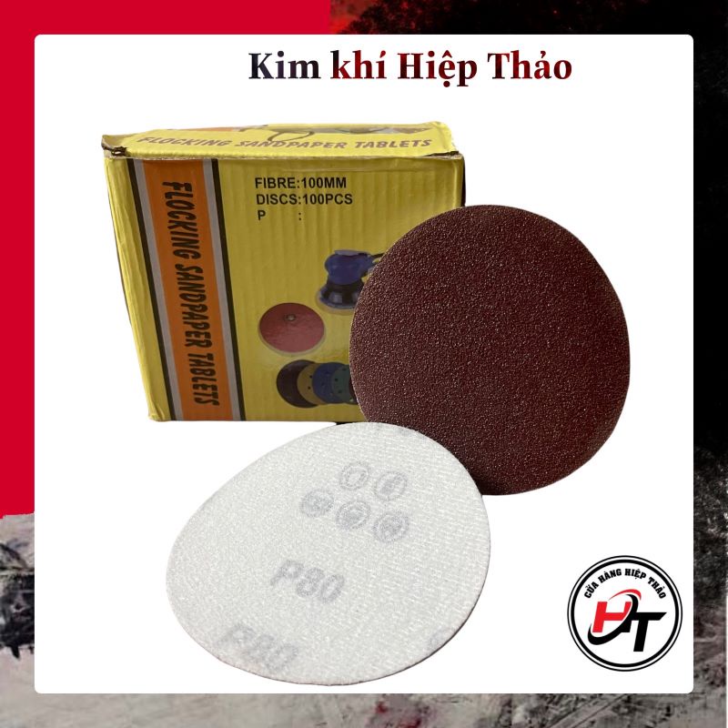 Giấy nhám tròn mịn thô chà gỗ giấy ráp dính 100mm GNT100