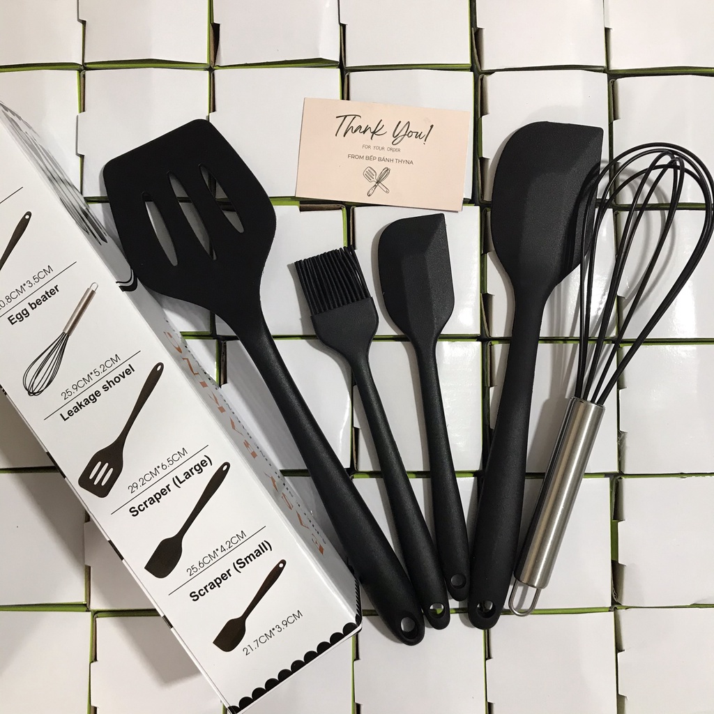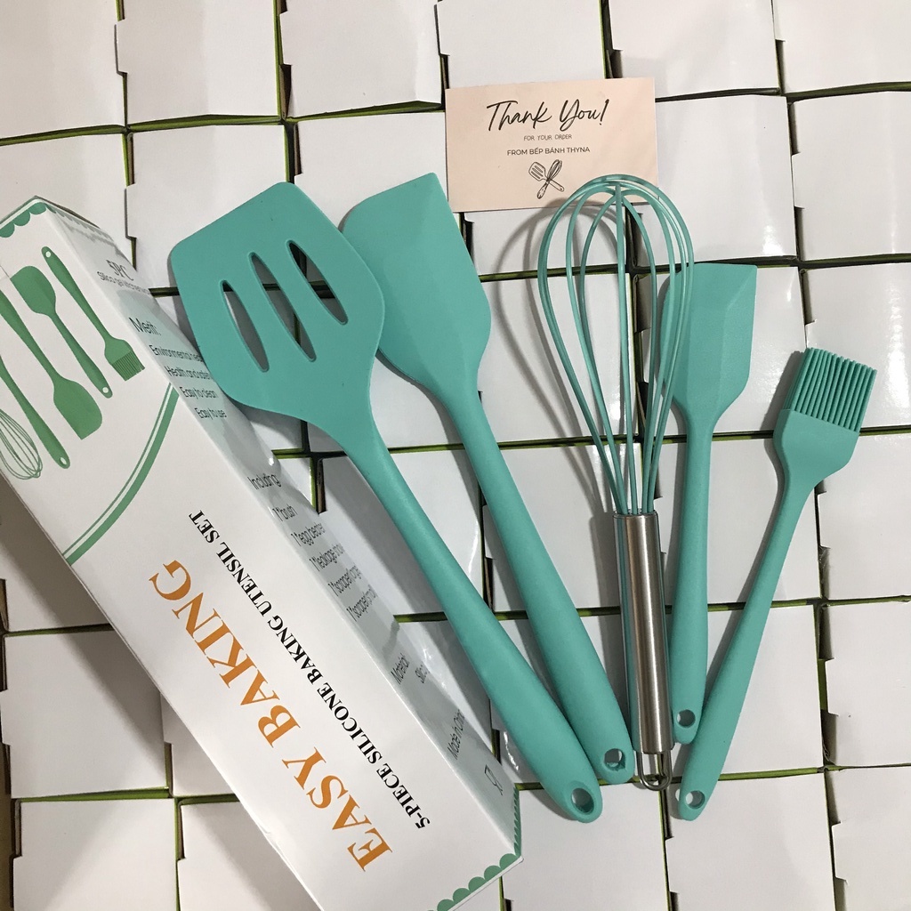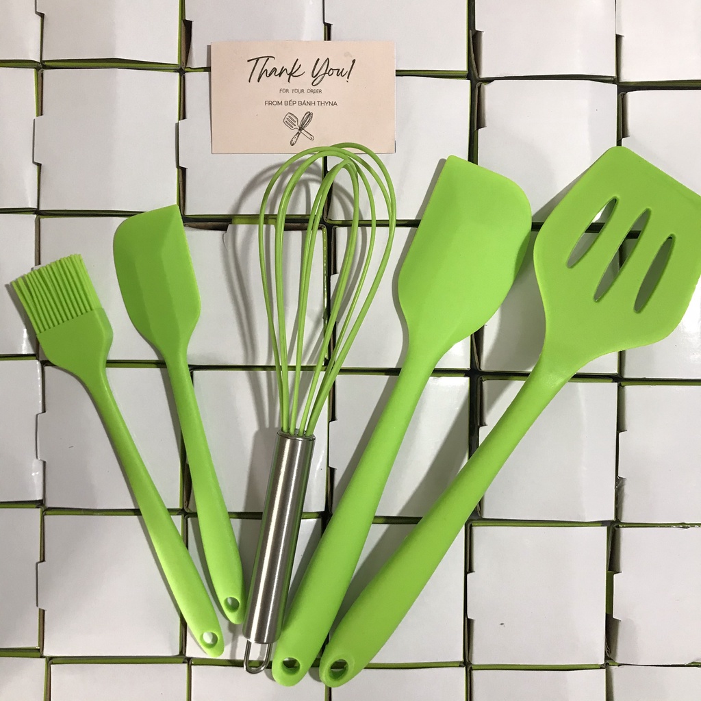 Bộ 5 dụng cụ làm bánh silicone - Bếp Bánh ThynaLưu ý: Sản phẩm của shop là hàng LOẠI 1, dụng cụ siêu dày dặn, phới to, cầm chắc tay, dùng siêu bền. Không phải loại mỏng nhẹ như các shop khác!