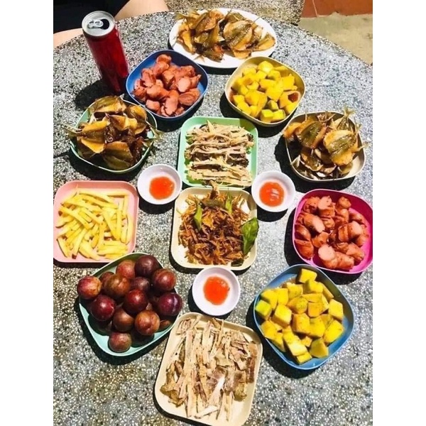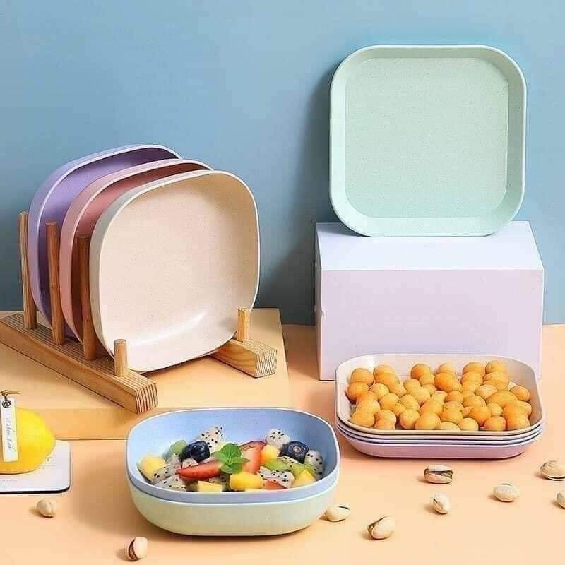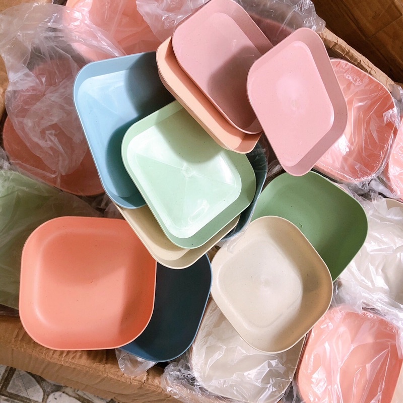 Set 8 đĩa lúa mạch màu pastal siêu xinh, đĩa lúa mạch hình vuông đựng thức ăn, hoa quả, bánh kẹo