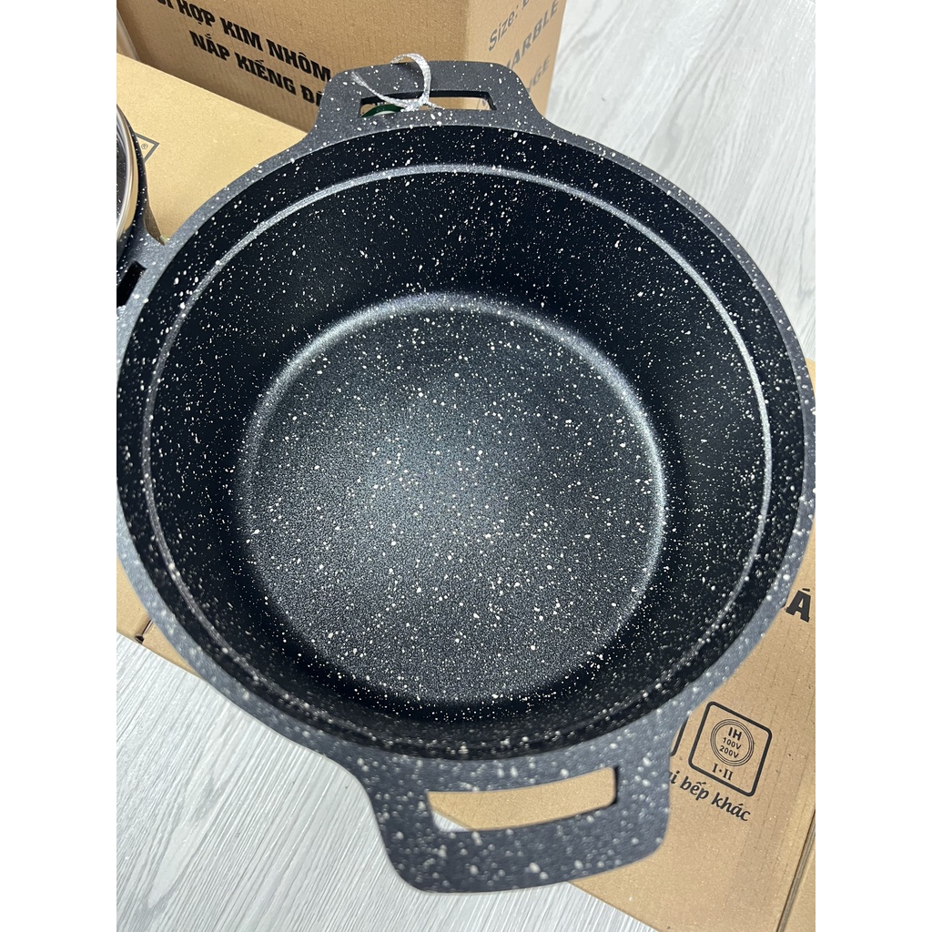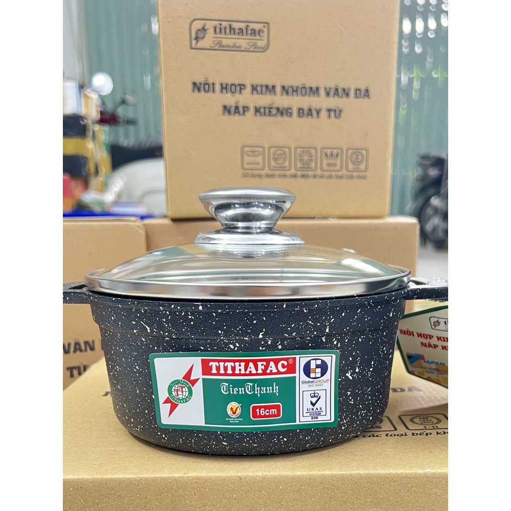 Nhà cửa & Đời sống > Dụng cụ nhà bếp > Nồi || Nồi vân đá chống dính - nồi nấu bếp từ Tithafac Cao Cấp Nắp Kính - Dụng Cụ BếpCòn hàng