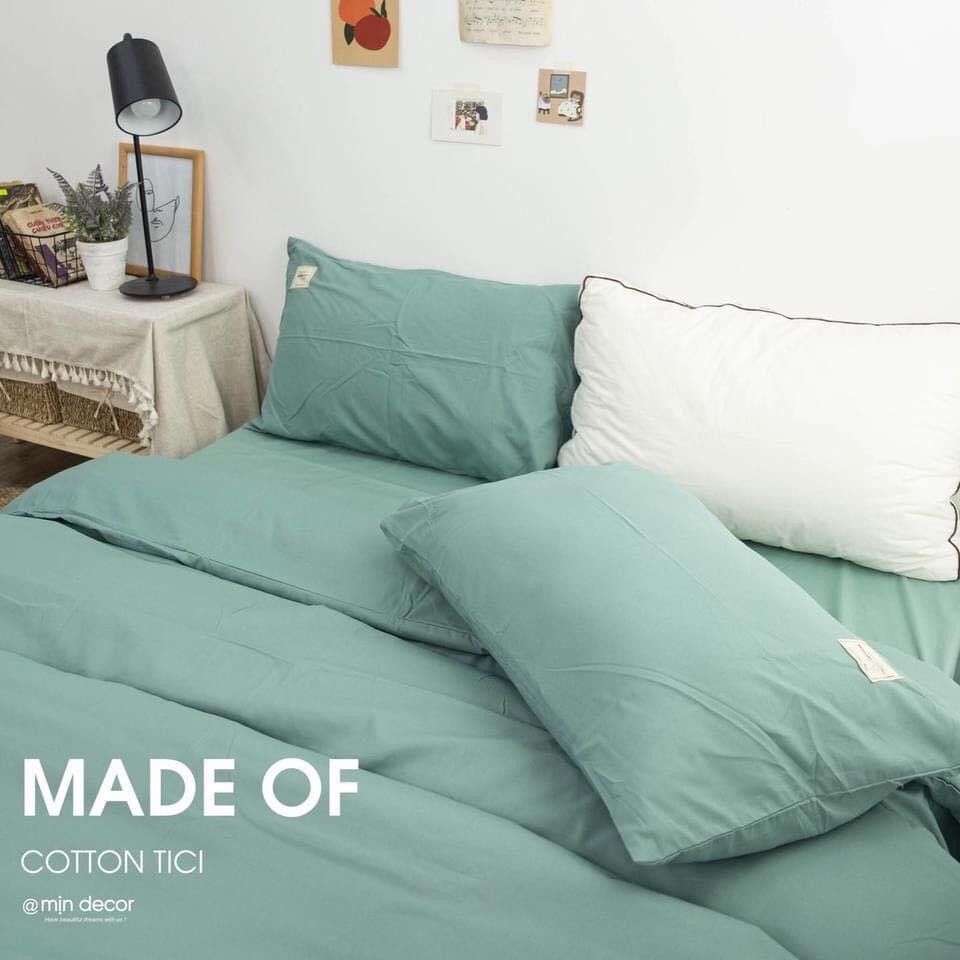 Bộ chăn ga gối cotton tici, bộ ga giường vỏ chăn trơn màu thoáng mát mềm mại