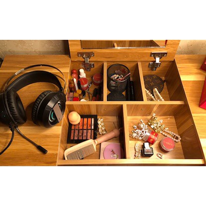 +Mặt trên bạn có thể làm việc còn phần dưới là những khoảng trống giúp bạn cất chứa các phụ kiện trang điểm hoặc những cuốn sách yêu thích của bạn.