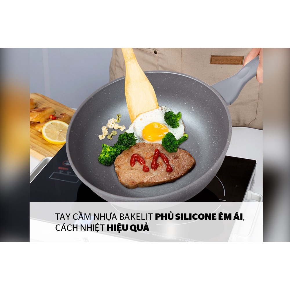 Chảo Chống Dính Vân Đá Sâu Lòng SUNHOUSE SHG1228MMA, Chảo Dùng Cho Mọi Loại Bếp