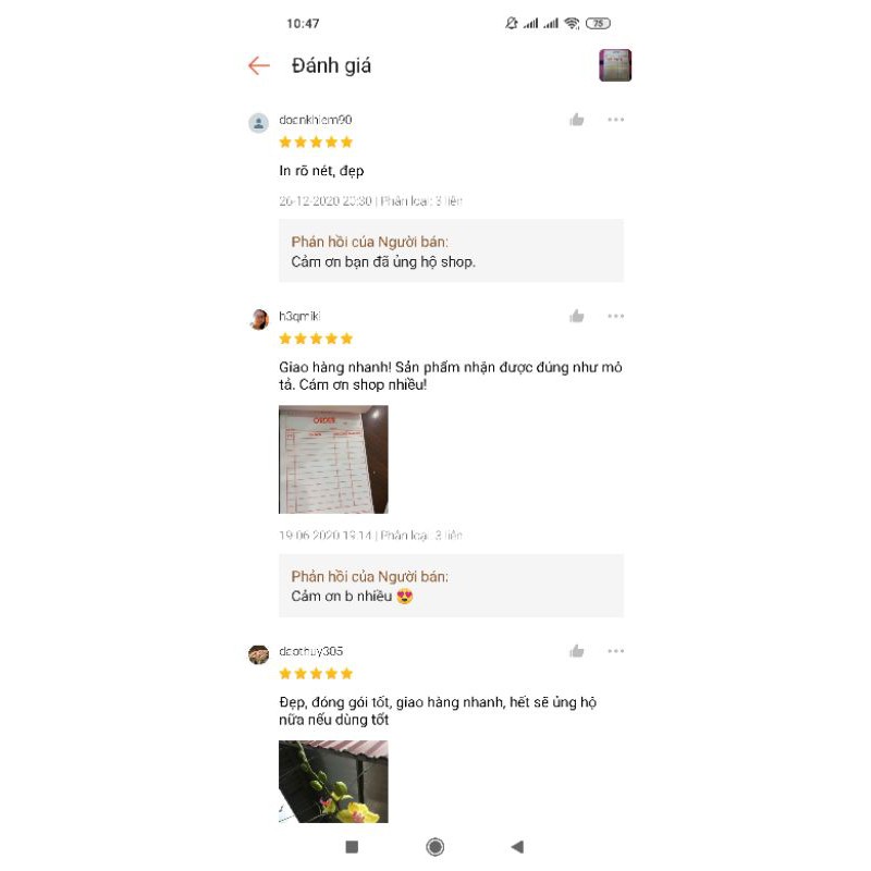 Làm từ chất liệu giấy carbon giúp shop dễ lưu liên 2 ,3 mà không cần giấy than