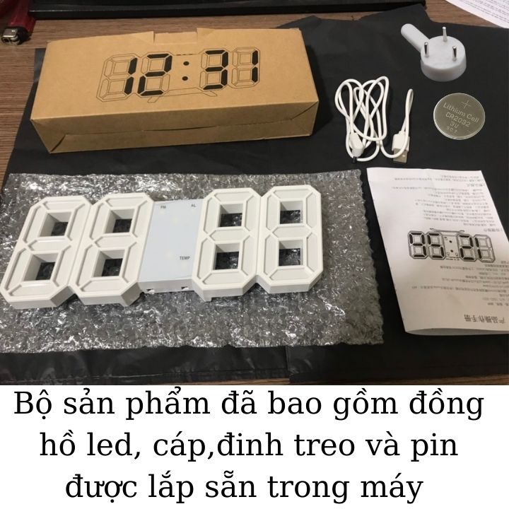 Bộ sản phẩm bao gồm: đồng hồ led 3D kĩ thuật số + hướng dẫn sử dụng + cáp USB