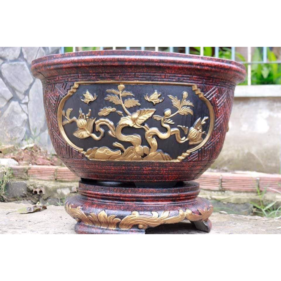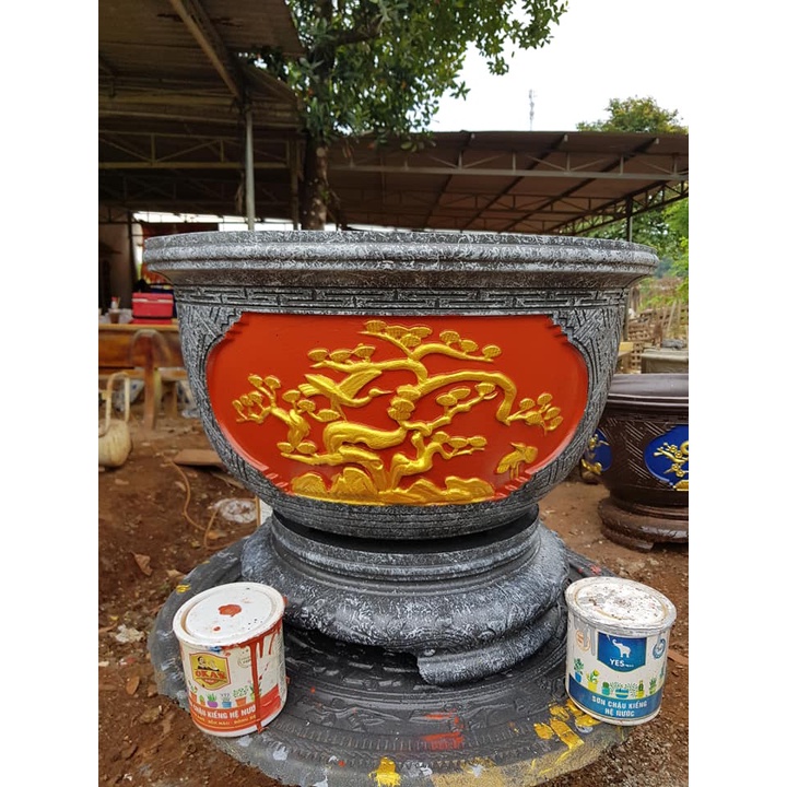 9. Sơn chậu. Lần đầu cho khô rồi quét lần hai, chờ khô rồi vẽ họa tiết, chờ khô rồi phủ bóng.