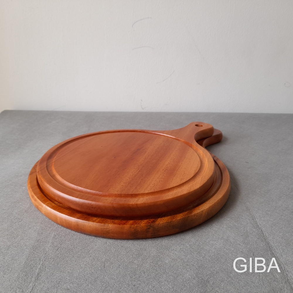 - Khay gỗ tròn có tay cầm GIBA được làm từ gỗ nhiên thân thiện môi trường.