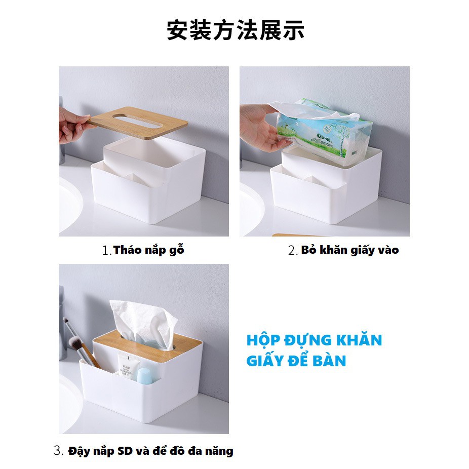 Giới thiệu Hộp Đựng Giấy Vuông Nắp Gỗ Để Bàn Gồm 2 Ngăn Đựng Đồ Thông Minh